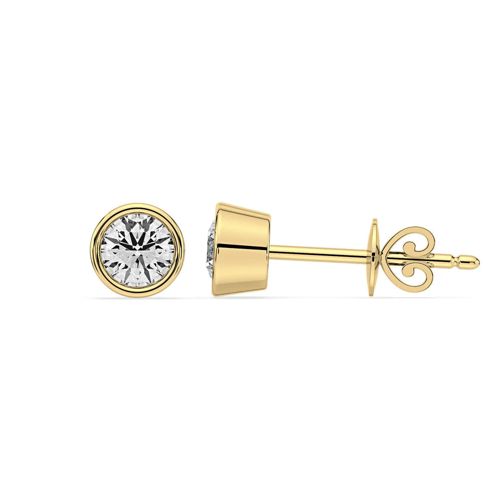 Elevate your everyday style with The Classic Bezel Round Diamond Studs. These timeless earrings offer a clean, refined look that seamlessly transitions from casual outings to elegant evenings. The simple yet sophisticated bezel setting gracefully frames each round diamond, allowing its natural brilliance to take center stage.