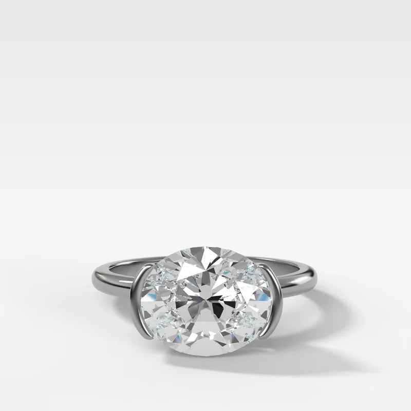 East West Half Bezel Solitaire Engagement Ring With Oval Cut Diamond
