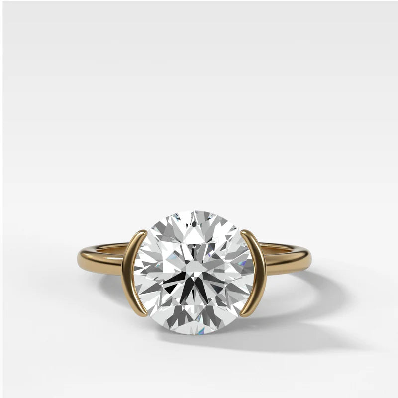 Half Bezel Solitaire Engagement Ring With Round Cut Diamond