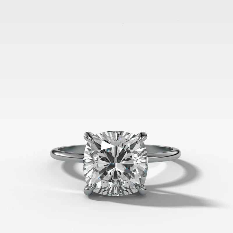 Thin + Simple Solitaire Engagement Ring With Cushion Cut Diamond