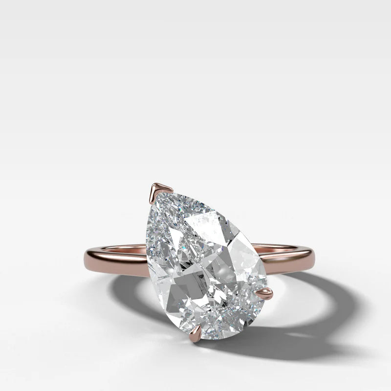 Tilted Thin + Simple Solitaire Engagement Ring With Pear Cut Diamond