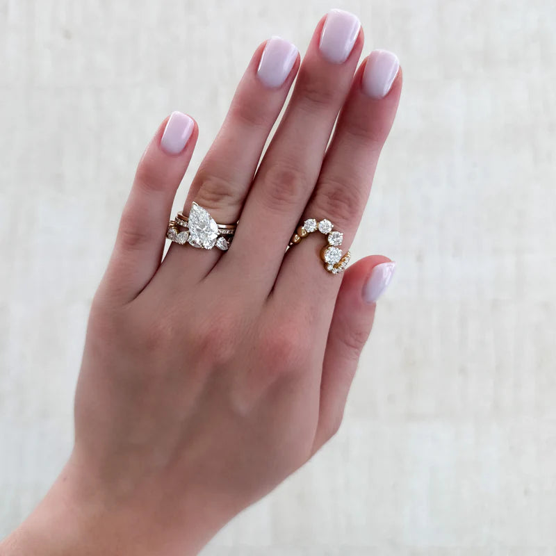 Introducing the East-West Pear Solitaire, a striking ring defined by its unique orientation. This fresh design takes the classic, beautiful Pear Cut diamond and turns it 45 degrees, setting it tilted across the finger. This simple twist creates a confident, modern statement that maximizes the diamond's visual spread while sitting flush and comfortably on the hand.